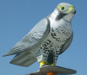 - Robop Falk is a dummy with moving mechanisms that mimic a peregrine perfect. The dummy moves head, wings and body at irregular intervals - controlled by an integrated microprocessor. By typical falcon sounds of 85 dB Gain an additional Vergrämungseffekt is achieved. By a light sensor Robop is only active during the day.